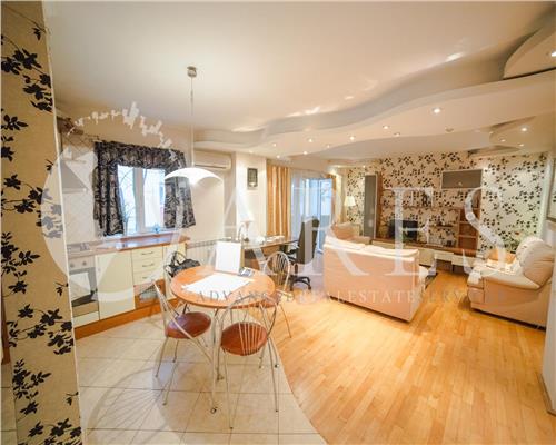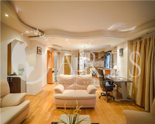 Este mobilat și amenajat modern, cu un design încântător. Plin de culoare, iluminat cu spoturi și amenajat cu bun gust - tapet cu motive florale, accent de lemn și mobilier modern.
