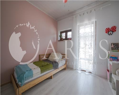 Casa se poate preda mobilată complet, contracost. Este pretabilă pentru o locuință cu clasă, dar și pentru un birou. Are și diverse îmbunătățiri: parchet pentru trafic greu, pivniță de 12mp ideală pentru depozitare, terasă semi-închisă cu pereți de tip cortină. În plus, curtea este amenajată cu loc de joacă pentru copii și gazon.
